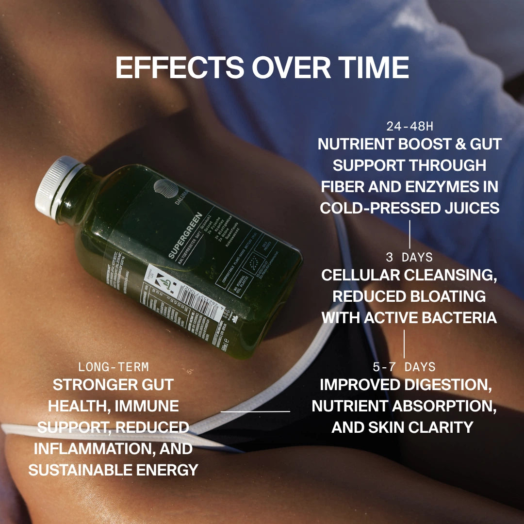 Die Better Gut Saftkur 7 Tage ist ein tiefenwirksamer Juice Cleanse, der den Darm regeneriert, das Mikrobiom stärkt und das innere Wohlbefinden langfristig unterstützt. Sie kombiniert bio-kaltgepresste Säfte mit SYM-BIOTIC 23/100 BILLION, um die Darmflora zu revitalisieren und die Verdauung sanft zu harmonisieren.