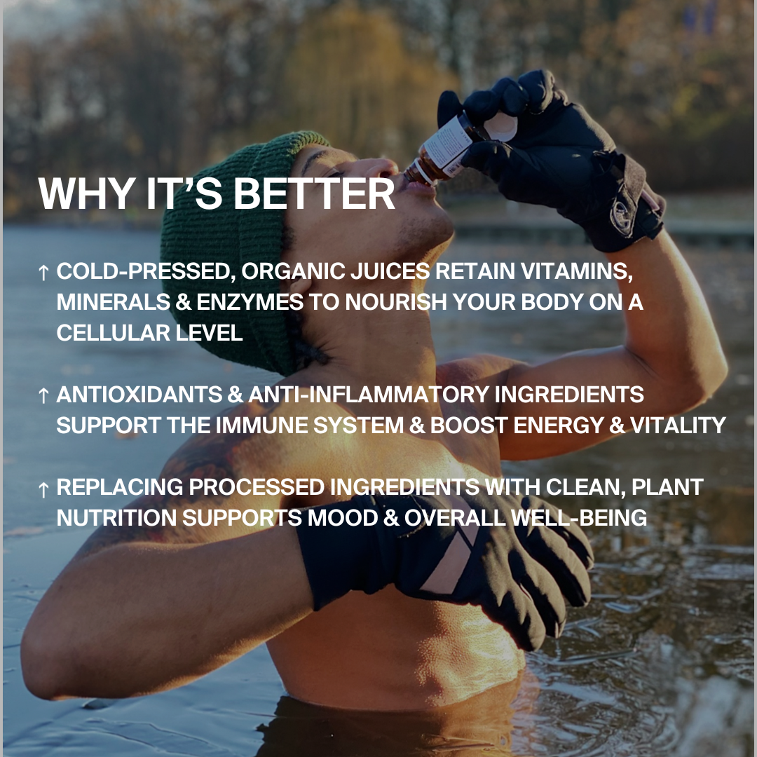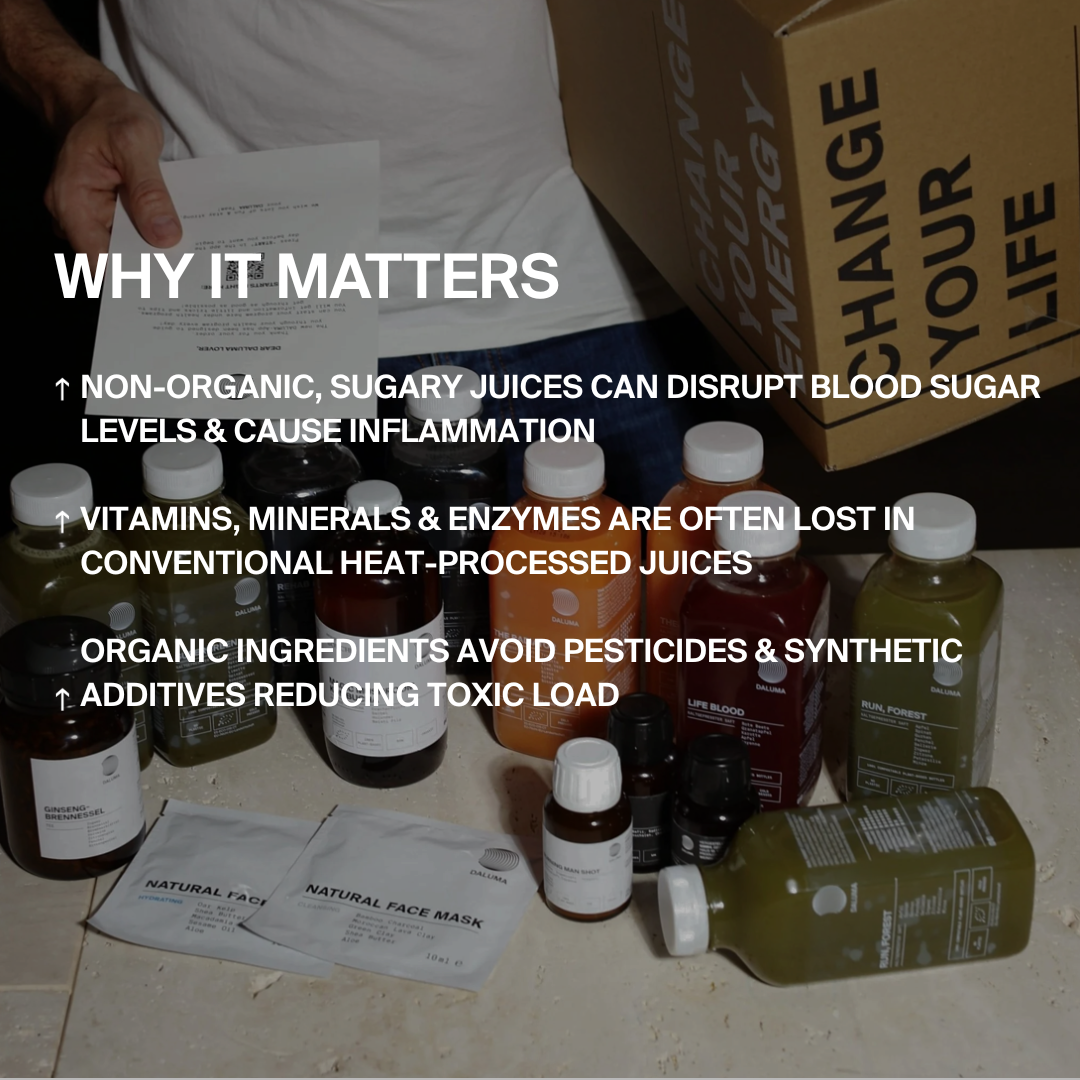 Das Daily Health Package vereint bio-kaltgepresste Säfte und Kombucha für maximale Nährstoffdichte – ganz ohne Pasteurisierung. Es liefert dem Körper frische Energie, aktiviert den Stoffwechsel und unterstützt natürliche Energieprozesse für mehr Vitalität im Alltag.